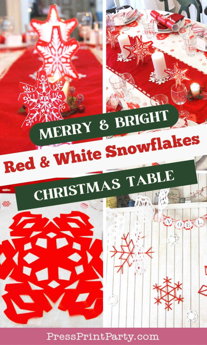This year, I created a printable set to match these beautiful red and white snowflakes. Perfect for inspiring creative Christmas party ideas that everyone will enjoy!