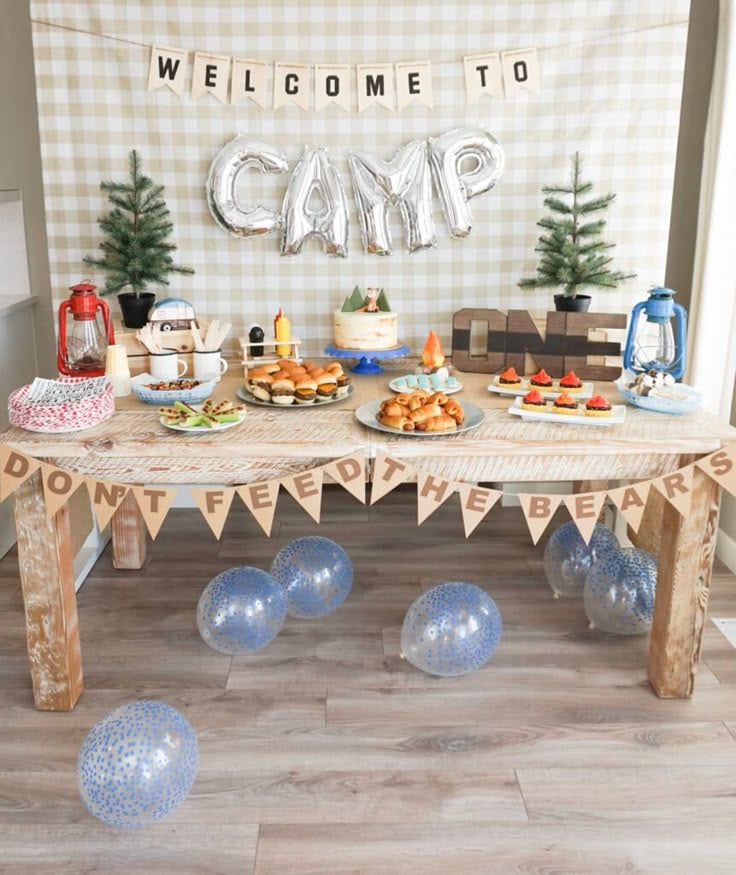 And while a full-blown camping trip with a one-year-old might be a bit much, a camping themed birthday party is just right.
