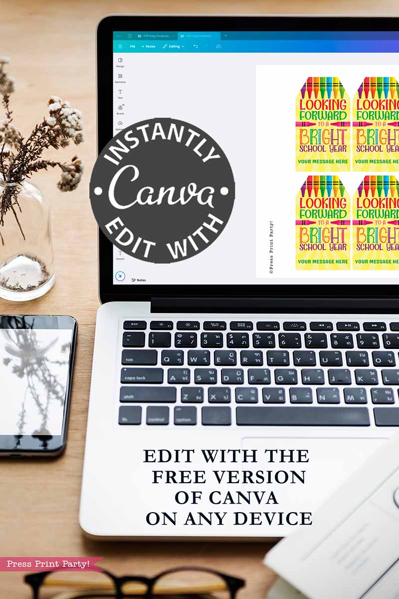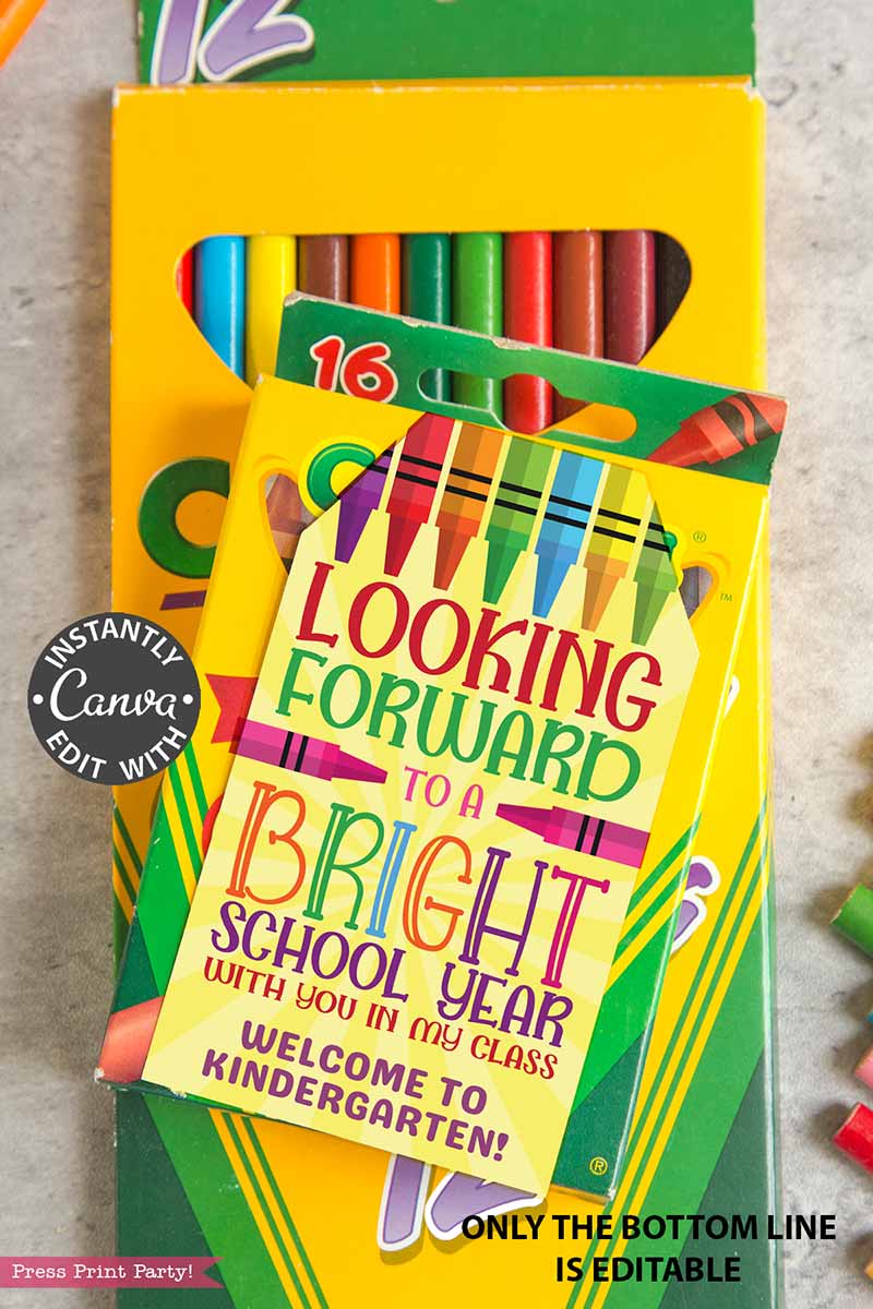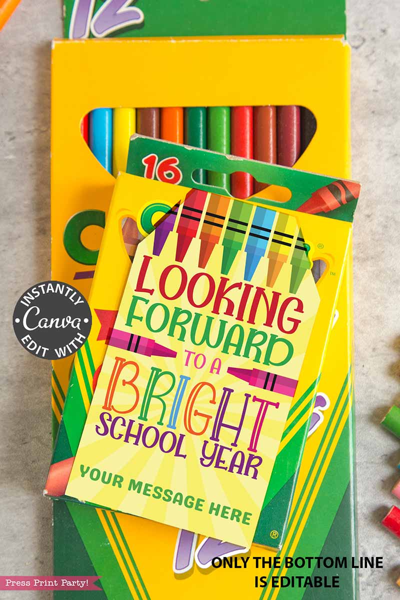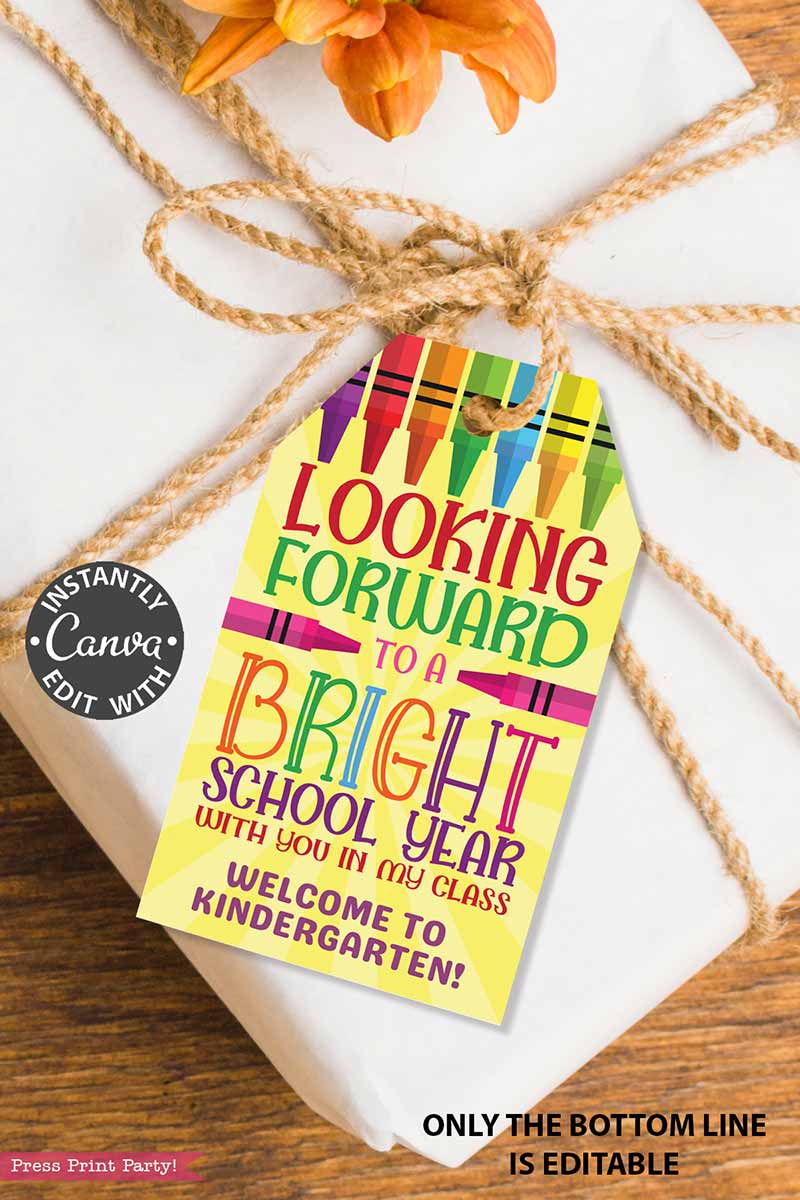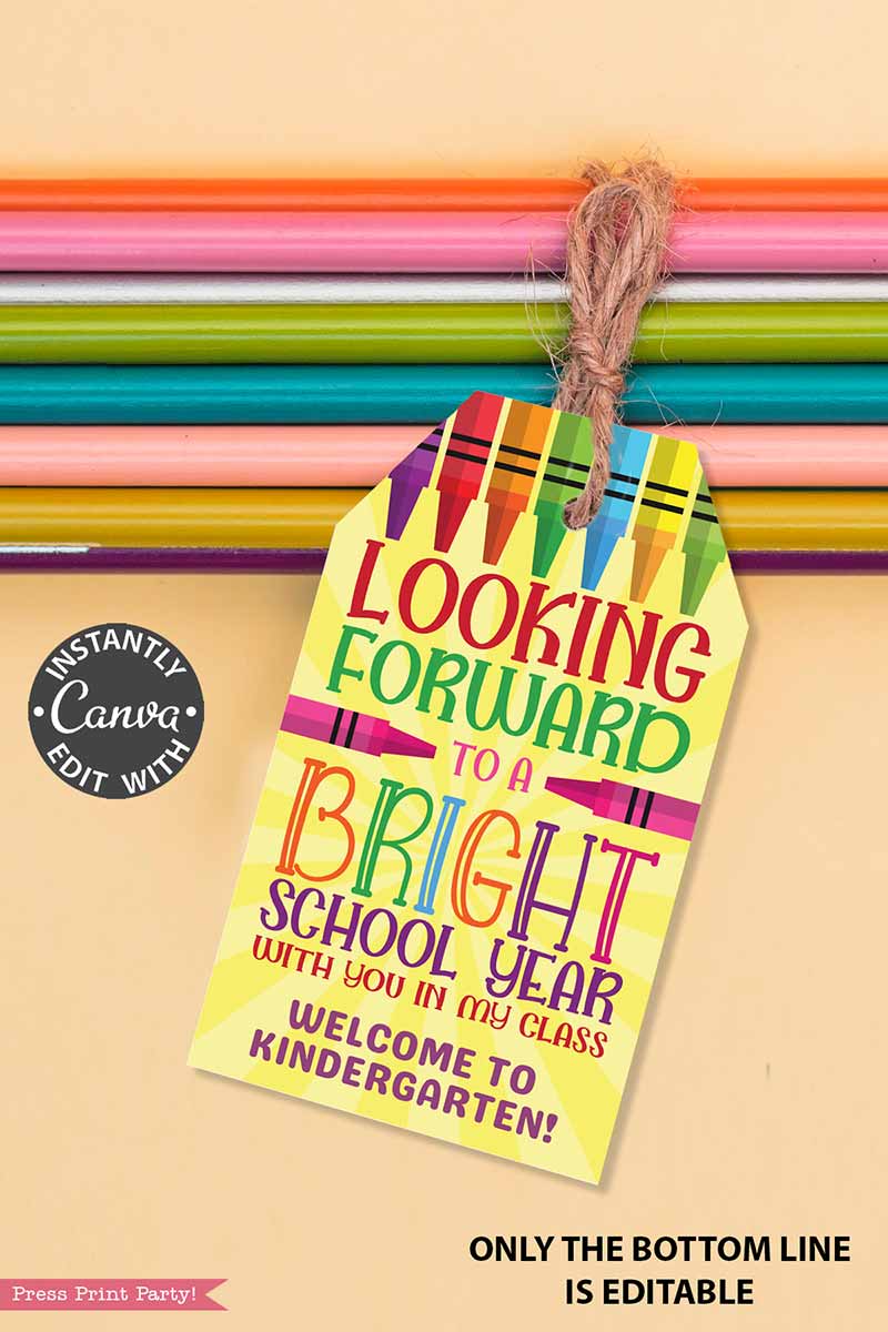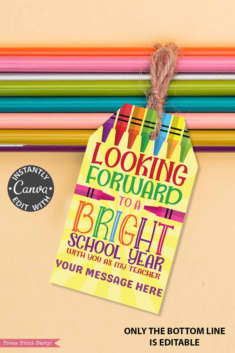 EDITABLE Back to School Teacher Gift Tag Printable, First Day of School Editable Label, Looking Forward to a Bright School Year, Crayon Student Favor, INSTANT DOWNLOAD