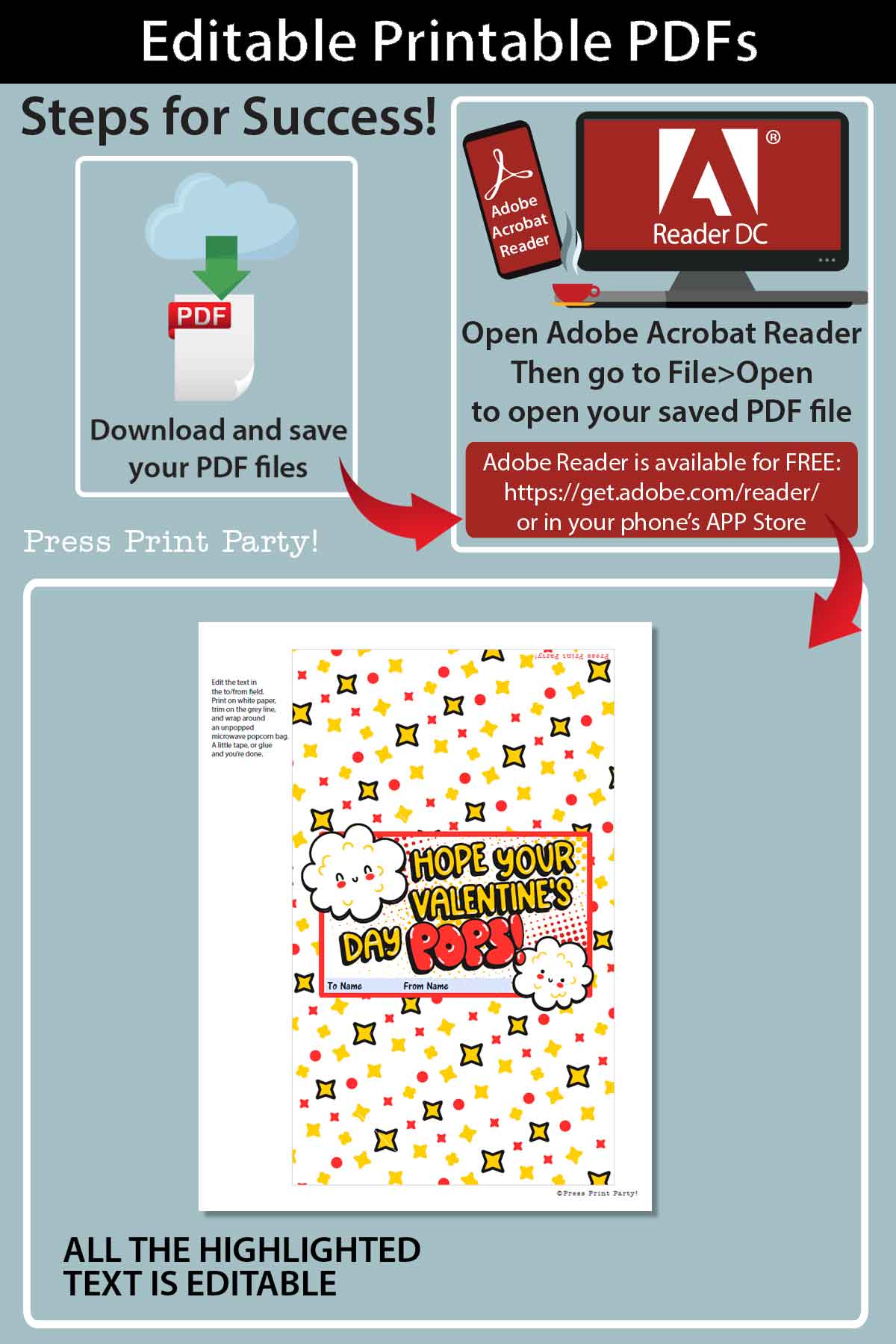 Popcorn Bags Wrap, Kids Valentines Cards Printable, EDITABLE names, Hope Your Valentine’s Day Pops, School Classroom, INSTANT DOWNLOAD